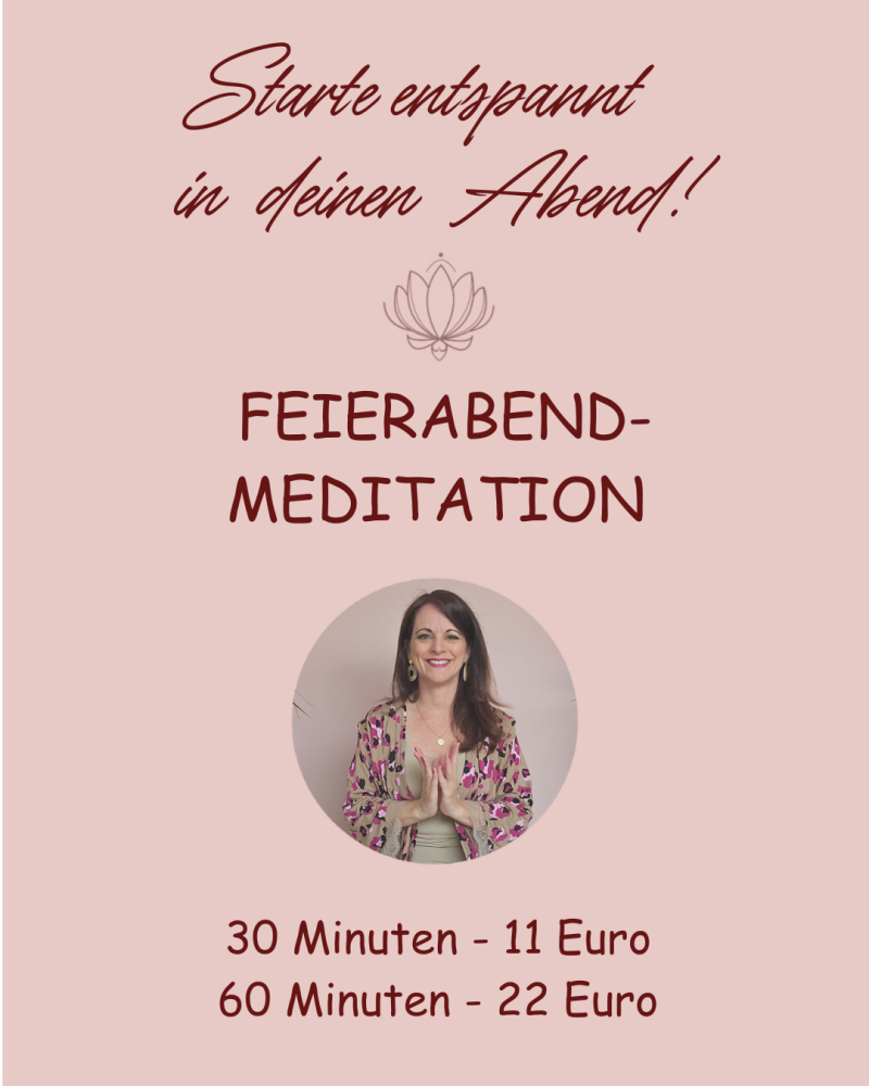 In den die Feierabend-Meditationen kannst du deinen Tag reflektieren und schwierige Themen bewusst loslassen. Dadurch kannst du zur Ruhe kommen, um anschließend deinen Abend ganz entspannt genießen zu können.
